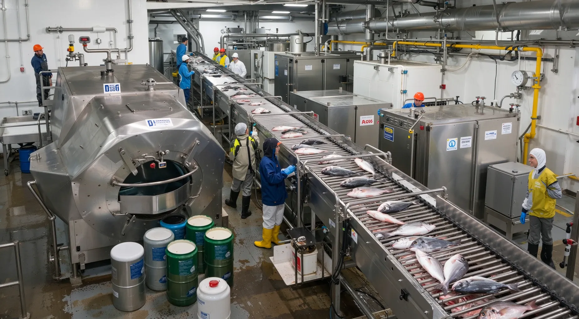 Floating factory ships, seafood processing