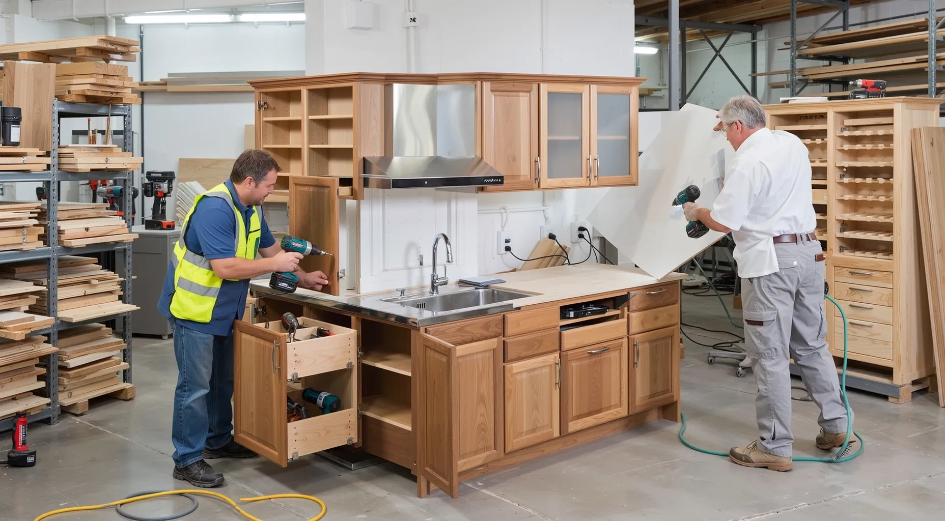 在施工现场进行的橱柜工作
